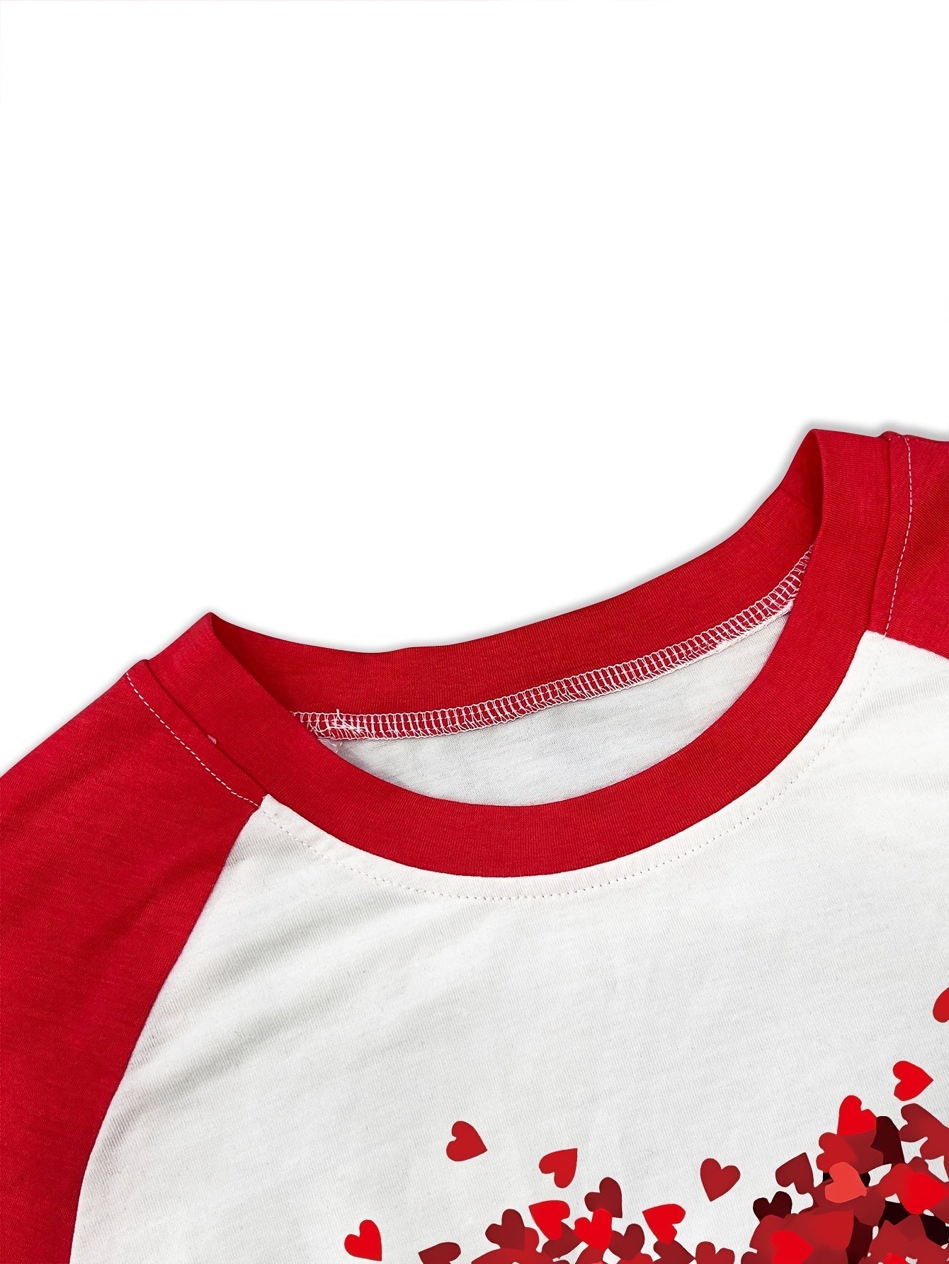 features a casual design with a round neck and a playful heart print. The overall look is relaxed and comfortable, making it suitable for everyday wear. The fabric has a soft feel and a slightly elastic quality, allowing for ease of movement. This sweatshirt is perfect for layering during the spring and autumn seasons, providing light warmth while maintaining a stylish appearance.