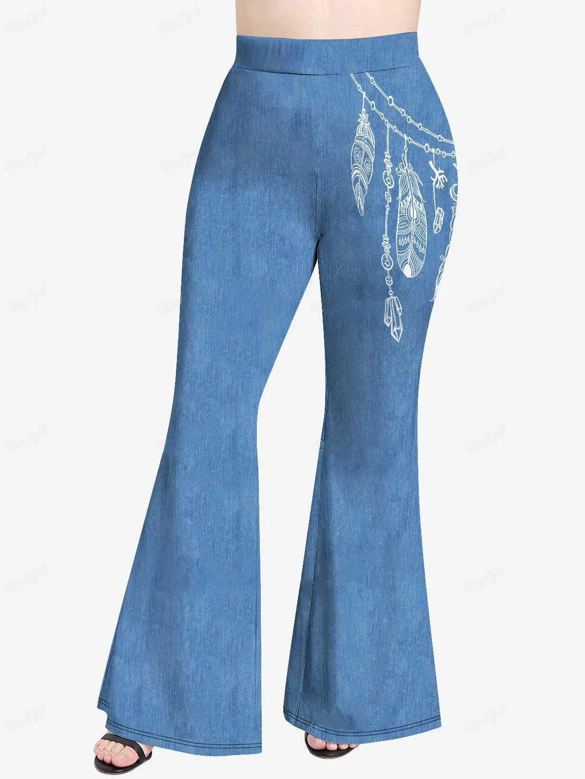 The Celeste flared trousers feature a unique 3D denim print that adds a creative flair to your casual wardrobe. Designed for plus-size individuals, these trousers come with an elastic waistband for a comfortable fit. The playful design makes them a standout piece for everyday wear.