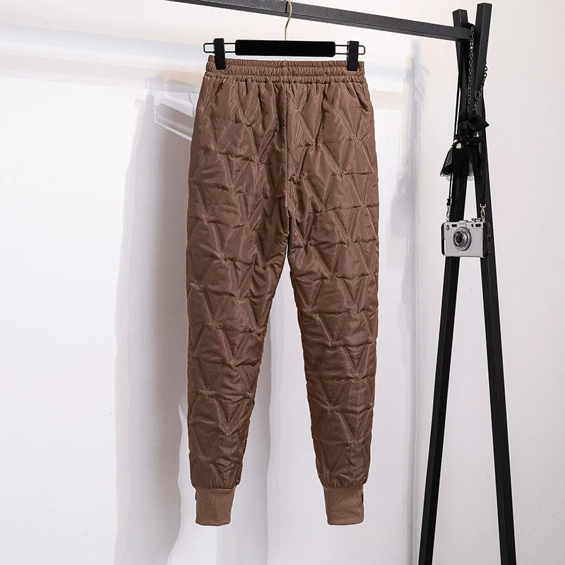 The Celeste Winter Trousers are designed for the colder months, providing both comfort and warmth. Featuring a down fill, these trousers offer insulation against chilly weather. The elasticated high waistband ensures a secure fit, while the loose design allows for easy movement and versatile styling options.