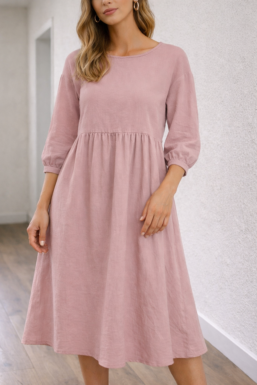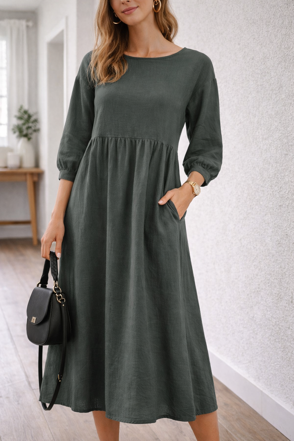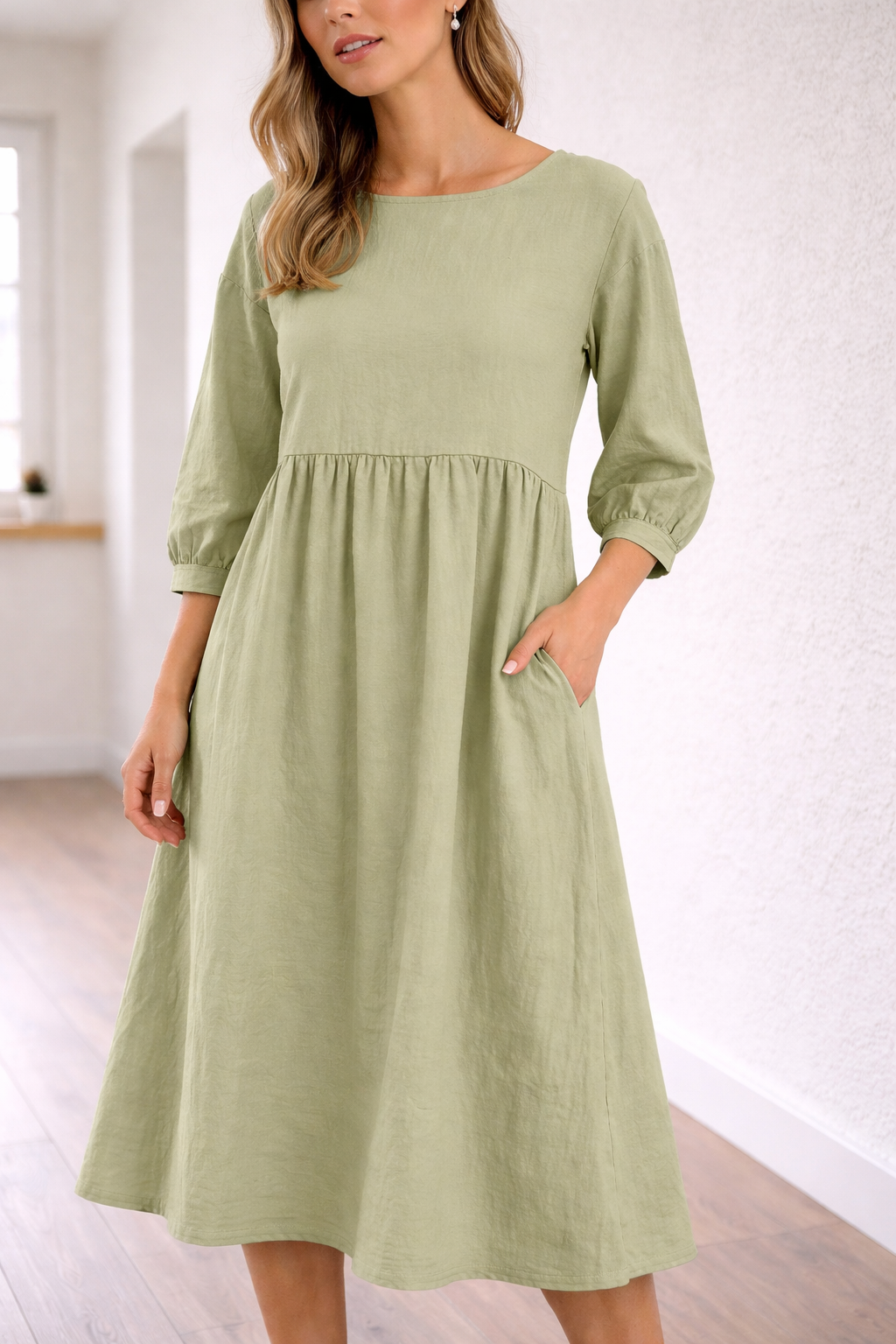 Women's three-quarter sleeve midi dress