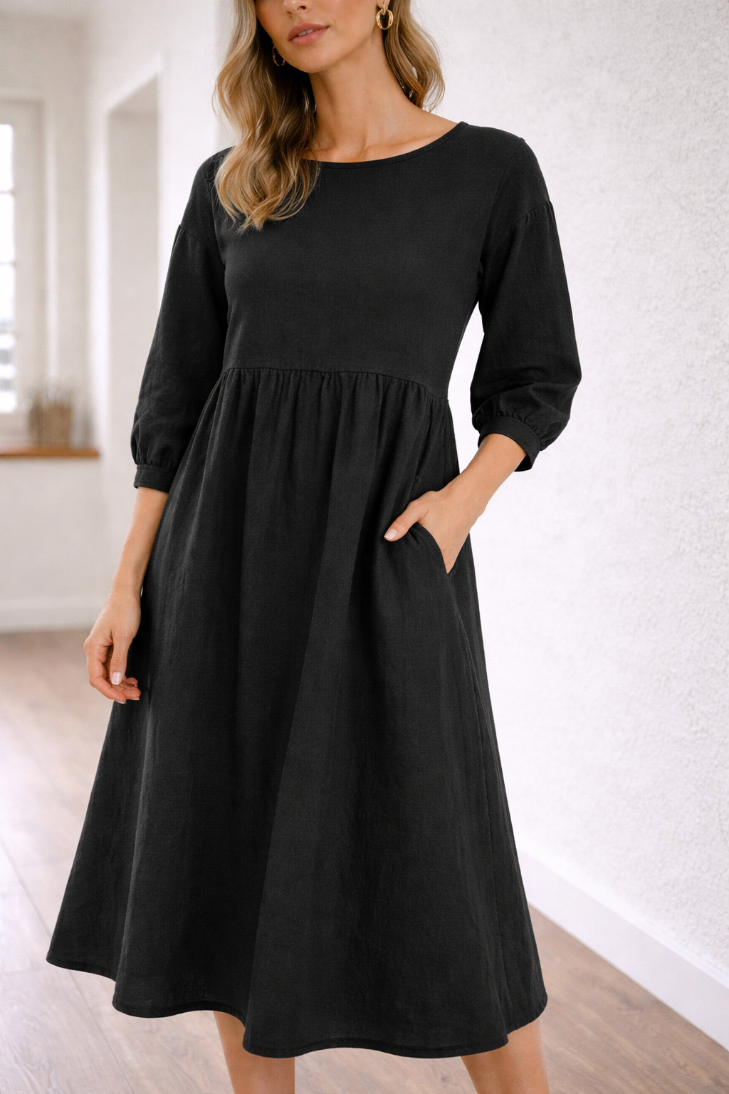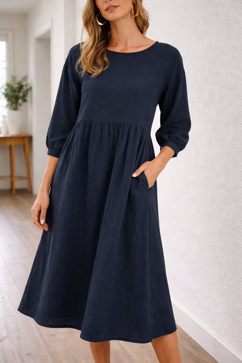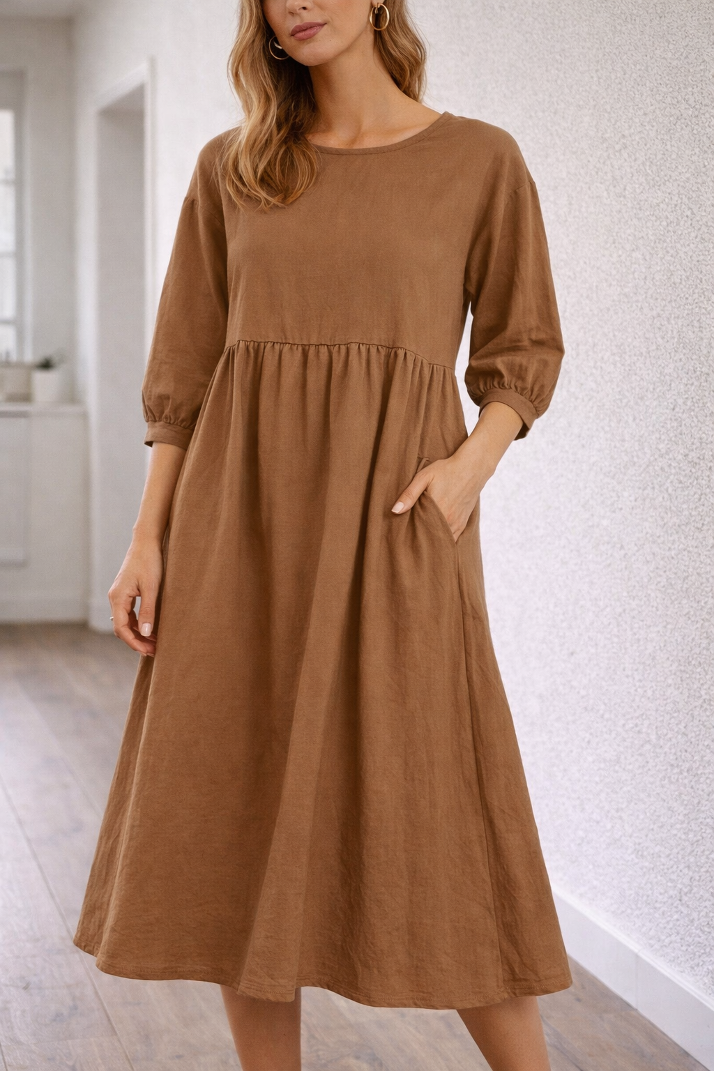 Women's three-quarter sleeve midi dress