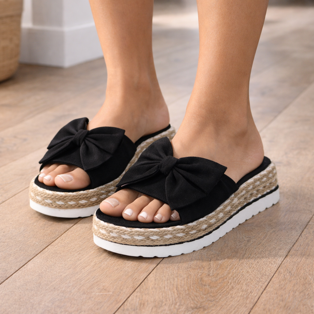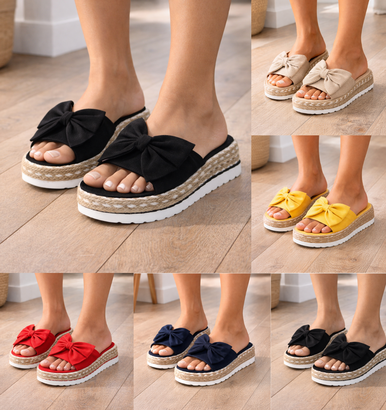 Sandals are designed to provide comfort and style during the summer. These sandals feature a feminine bow and a thick, cushioned sole for great support. The woven espadrille detailing adds a bohemian feel, making them suitable for both casual and festive occasions.