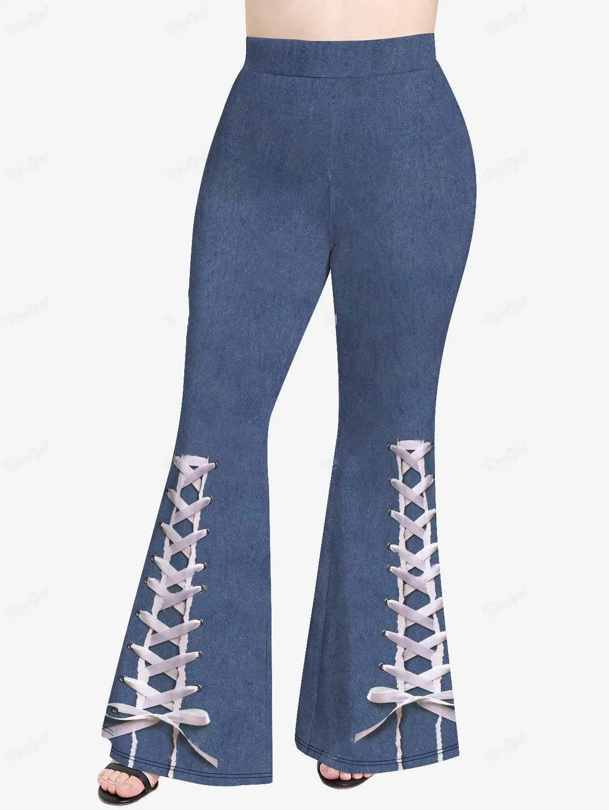 The Celeste flared trousers feature a unique 3D denim print that adds a creative flair to your casual wardrobe. Designed for plus-size individuals, these trousers come with an elastic waistband for a comfortable fit. The playful design makes them a standout piece for everyday wear.